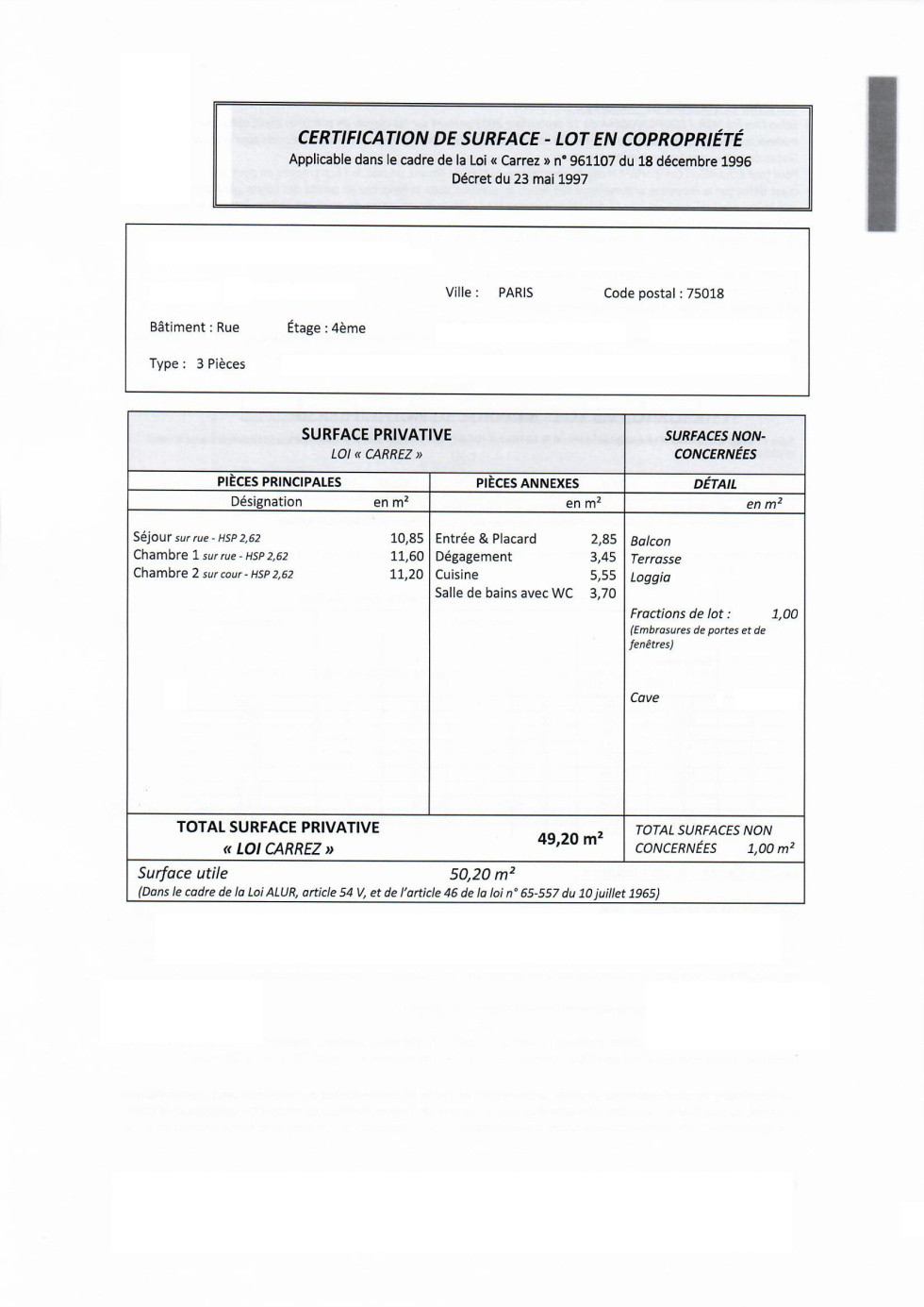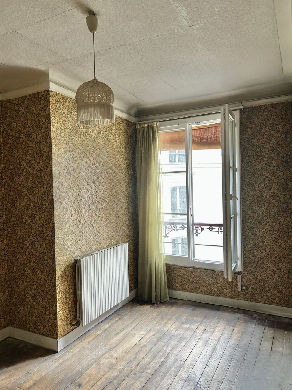 Appartement de 2/3 pièces de 49,20m² loi Carrez (50,20 m² habitables) à proximité immédiate de la Place Jules Joffrin dans une rue calme dans le 18ème arrondissement vivant et agréable. L’appartement se trouve au 4ème étage d’un immeuble ancien en pierre de taille de bonne facture avec ascenseur. Il se compose d’une entrée un salon et deux chambres ou double réception (en abattant la cloison) et une chambre, une cuisine séparée, une salle de bains avec wc et placards. L’ensemble est à rénover à l’exception de l’intégralité des fenêtres qui ont été remplacées dernièrement. Il y a du parquet dans toutes pièces ainsi que deux cheminées et des moulures au plafond. Cela lui confère un charme de l’ancien. Cet appartement une fois remis au goût du jour sera parfait pour un couple ou pour un pied à terre bien situé dans Paris. Très faibles charges : 140 euros/mois. Chauffage et eau chaude individuel au gaz. En annexe : 1 cave