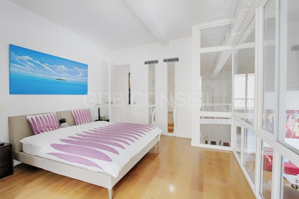 AU COEUR DU QUARTIER DE LA MUETTE – PASSY, APPARTEMENT- LOFT DE 200 M² Cet appartement atypique de 200 m² habitables (192 m² loi Carrez) se situe au deuxième étage dans le quartier de Passy avec tous ses commerces et transports immédiatement accessibles. Il se compose au premier niveau d’une triple réception de 83m², une chambre à coucher avec sa salle d’eau, un WC, la cuisine et son coin repas, la buanderie, la chaufferie ainsi qu’un dressing. Au deuxième niveau se trouvent la chambre principale, la salle de bains complète avec douche, baignoire et WC ainsi que de nombreux placards situés sur la mezzanine. Possibilité de créer une troisième chambre avec douche et lavabo à la place de la cuisine existante et déplacer cette dernière vers la partie salle à manger en une cuisine américaine. Les volumes sont généreux avec au plus haut 5,80m de hauteur sous plafond L’appartement est en très bon état avec du parquet Le chauffage est individuel au gaz Ballon d’eau chaude électrique Faibles charges Digicode et interphone